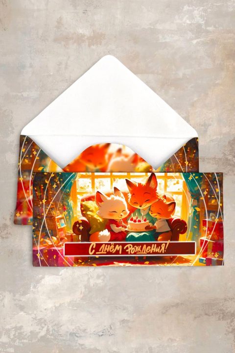 Конверт выполнен на высококачественной дизайнерской бумаге. Все наши конверты мы полностью рисуем сами. Уделяя огромное внимание мелочам, мы получаем уникальные конверты, пропитанные любовью и нежностью.