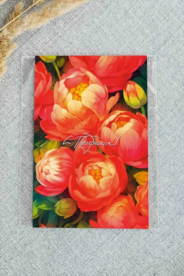 Дизайнерская открытка «С Праздником! (пионы)» Ar137