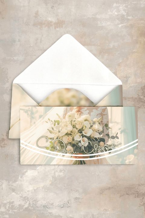 Конверт выполнен на высококачественной дизайнерской бумаге. Все наши конверты мы полностью рисуем сами. Уделяя огромное внимание мелочам, мы получаем уникальные конверты, пропитанные любовью и нежностью.
