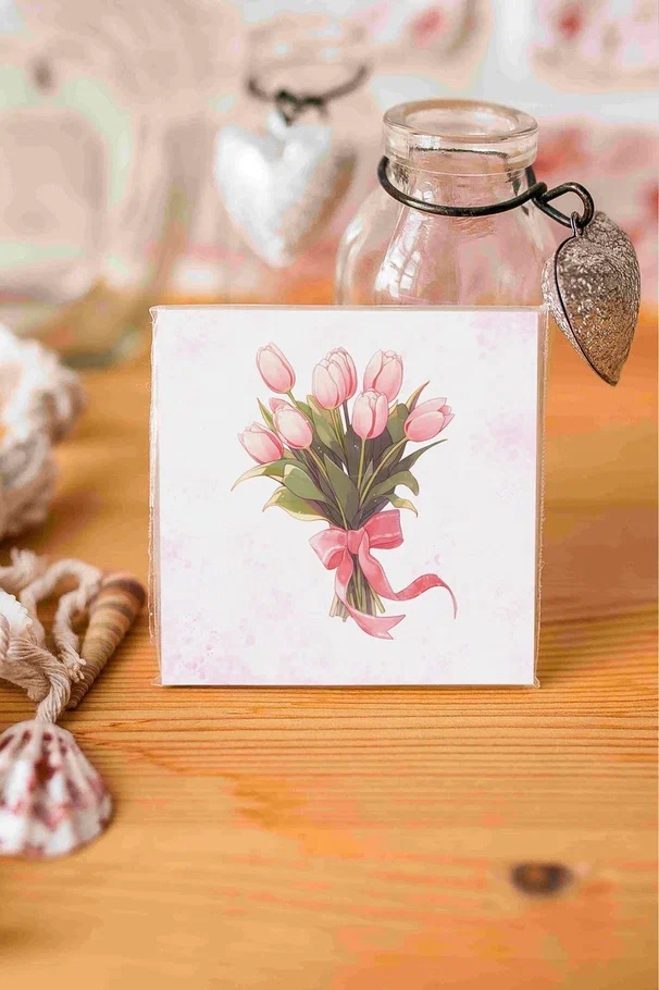 Мини-открытка «Букет тюльпанов» Mi85 Картон (цена за 10 штук)