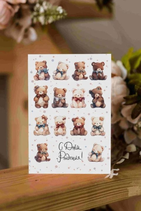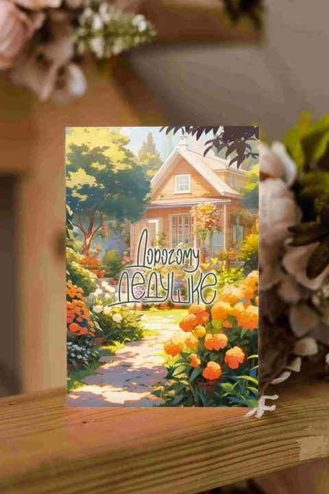 Открытка выполнена на высококачественной дизайнерской бумаге. В эти открытки мы вкладываем больше внимания и работы. Чтобы нарисовать такую открытку художнику нужен целый день. Каждая дизайнерская открытка — это предмет творчества наших художников. Можно сказать, что это картина в миниатюре.