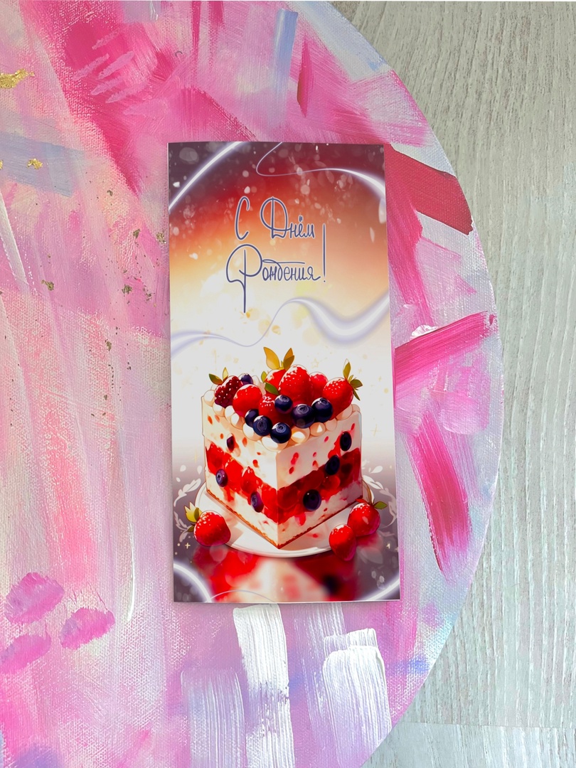Открытка Евро «С Днем Рождения! (клубничный торт)» E10